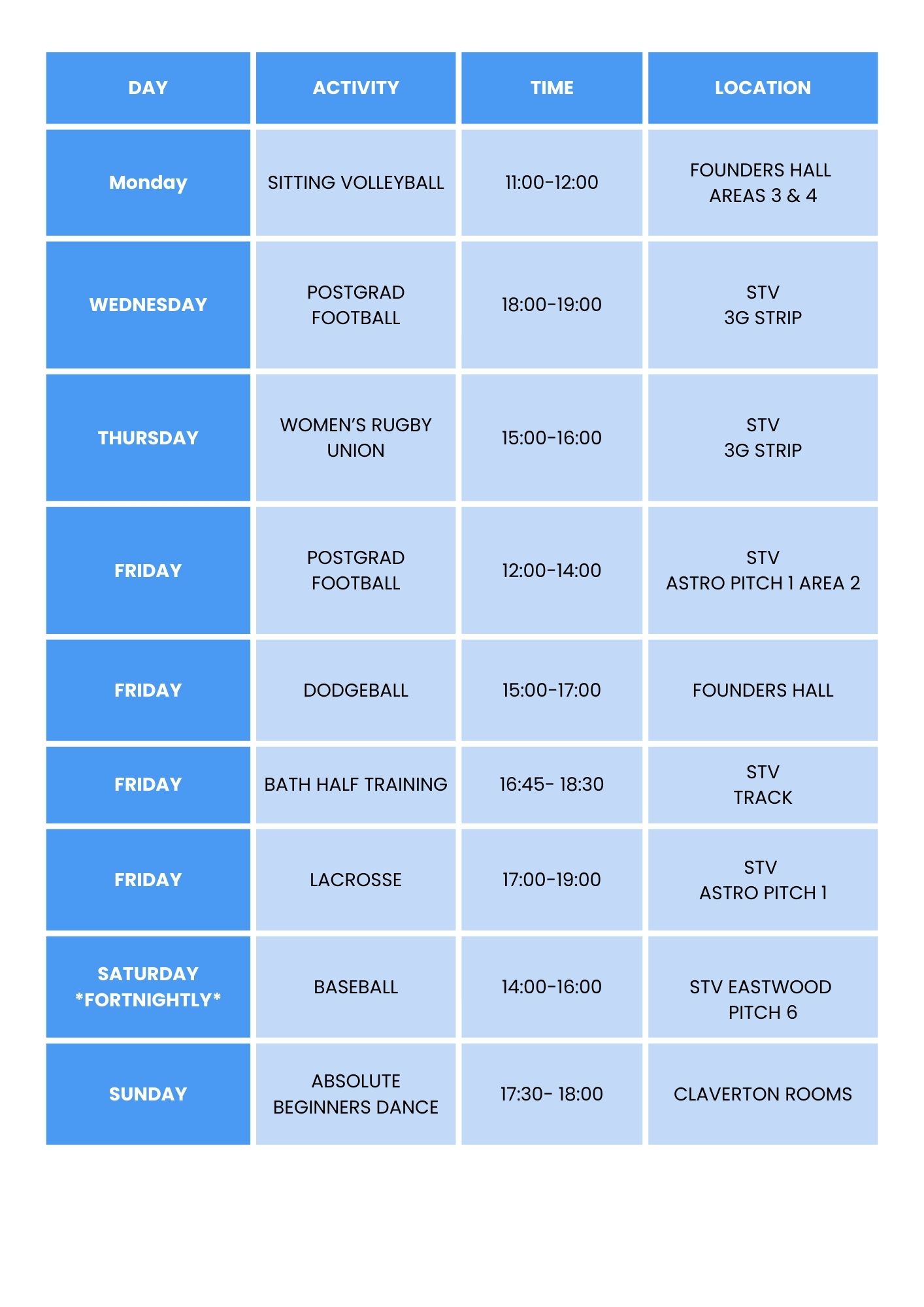 We are constantly looking to expand our Bath Active offers, so this timetable will be ever-expanding throughout the year!